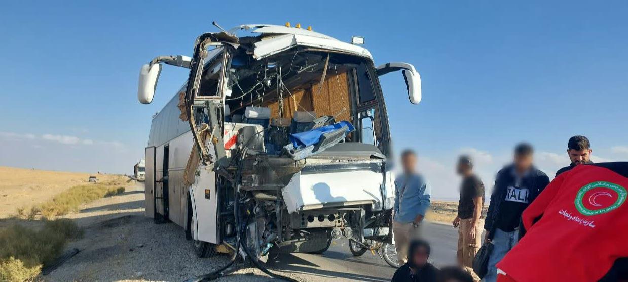 برخورد اتوبوس با تریلی در همدان با ۲۱ مصدوم
